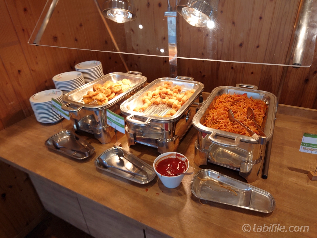 キッズコーナーはチキンナゲット、ハッシュドポテト、ナポリタン