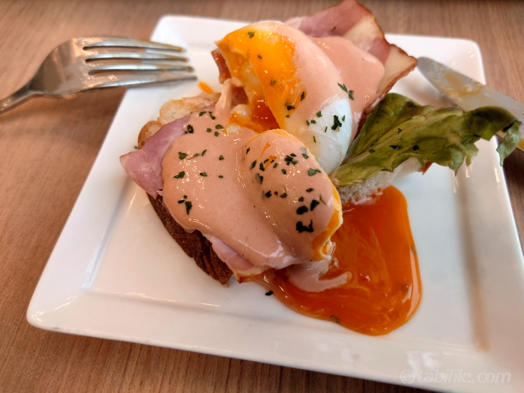 ベーコンエッグベネディクトはいい具合に半熟